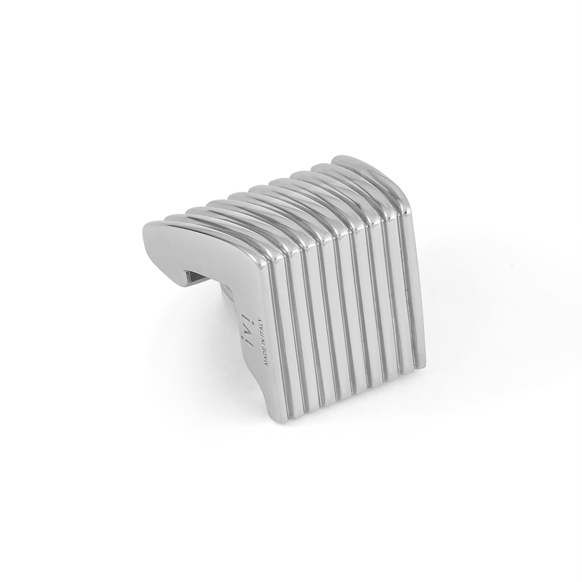 The rhodium-plated Liz clip earrings draw inspiration from vintage pieces. Crafted to hug the lobe comfortably, their hollow, squared silhouette gently fans out, enhanced by artful vertical engravings. The clip fastenings make this pair a versatile, easy-to-style choice.